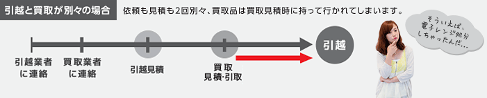 買取品もお引越し時に搬出するため、冷蔵庫や洗濯機などの生活必需品を売る場合でも、ご不便感じることなく直前までお使いいただけます。