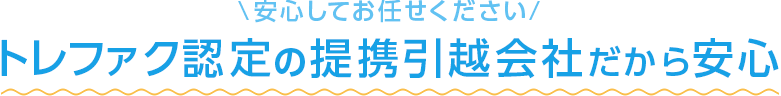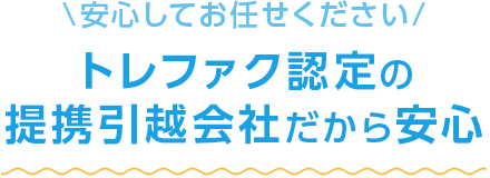 トレファク引越は、東証プライム上場の「株式会社トレジャー・ファクトリー」が運営する不用品買取+引越サービスです。年間91,200件の買取実績をもとに、査定技術やマナー研修を経た提携会社が買取と引越をご対応。お客様に気持ち良くご利用いただけるよう、最善の研修を重ね、トレファクならではの安心のサービスをご提供いたします。